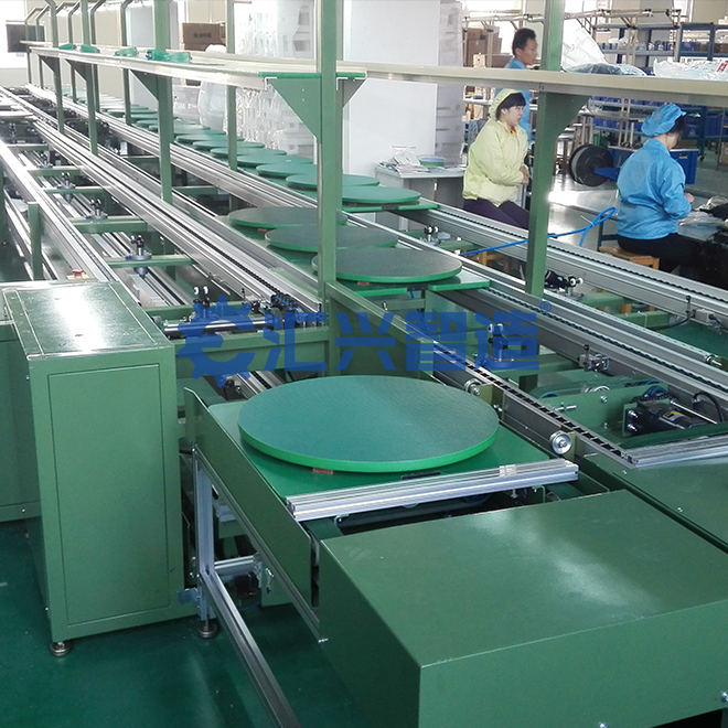 POS機(jī)裝配線,是指工件以一定的速率連續(xù)、均勻地通過(guò)一系列裝配工作站,按照一定要求在各裝配工作站完成相應(yīng)裝配工作的生產(chǎn)線。匯興智造裝配線是人和機(jī)器的有效組合,最充分體現(xiàn)設(shè)備的靈活性,將輸送系統(tǒng)、隨行夾具和在線專機(jī)、檢測(cè)設(shè)備有機(jī)的組合,以滿足多品種產(chǎn)品的裝配要求。裝配流水線的傳輸方式有同步傳輸?shù)?(強(qiáng)制式)也可以是非同步傳輸/(柔性式),根據(jù)配置的選擇,實(shí)現(xiàn)手工裝配或半自動(dòng)裝配。裝配線在企業(yè)的批量生產(chǎn)中不可或缺。