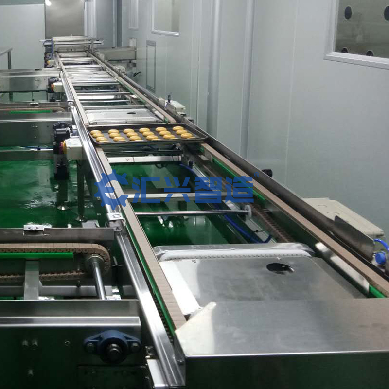組成:頂板鏈輸送機(jī)以標(biāo)準(zhǔn)頂板鏈為承載面,由馬達(dá)減速機(jī)為動力傳動,運(yùn)行在專用導(dǎo)軌中,根據(jù)工藝流程不同,頂板鏈分為轉(zhuǎn)彎及直線型。