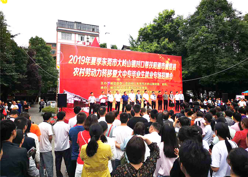 為進(jìn)一步做好威信縣勞動(dòng)力轉(zhuǎn)移就業(yè)工作,扎實(shí)推進(jìn)東莞大嶺山鎮(zhèn)對(duì)口幫扶威信扶貧工作,加強(qiáng)兩地的勞務(wù)協(xié)作,助推威信脫貧攻堅(jiān)。日前,威信縣委、政府及東莞市大嶺山鎮(zhèn)黨委、政府舉辦了“2019年夏季東莞市大嶺山鎮(zhèn)對(duì)口幫扶威信縣農(nóng)村勞動(dòng)力轉(zhuǎn)移就業(yè)專場招聘會(huì)”。