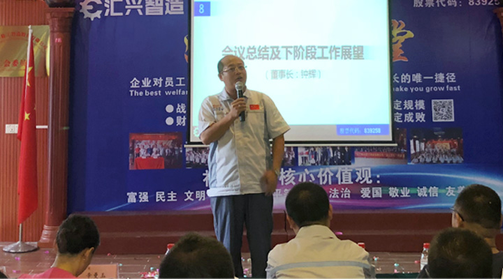 最后,由鐘輝董事長(zhǎng)作會(huì)議總結(jié)及下階段工作展望。董事長(zhǎng)鐘輝表示:“陪伴才是最長(zhǎng)情的告白”感謝各位同事及貴賓對(duì)匯興智造一如既往的支持。企業(yè)的發(fā)展離不開每一位的努力,未來匯興智造將快速發(fā)展的階段。沿著老路去不了新的地方,正如我們會(huì)議場(chǎng)上唱響的歌曲,相信我們創(chuàng)造奇跡。會(huì)議取得圓滿成功,集眾智,匯眾力,搶時(shí)間,抓機(jī)遇,全體匯興人,一諾千金,奮斗到底!