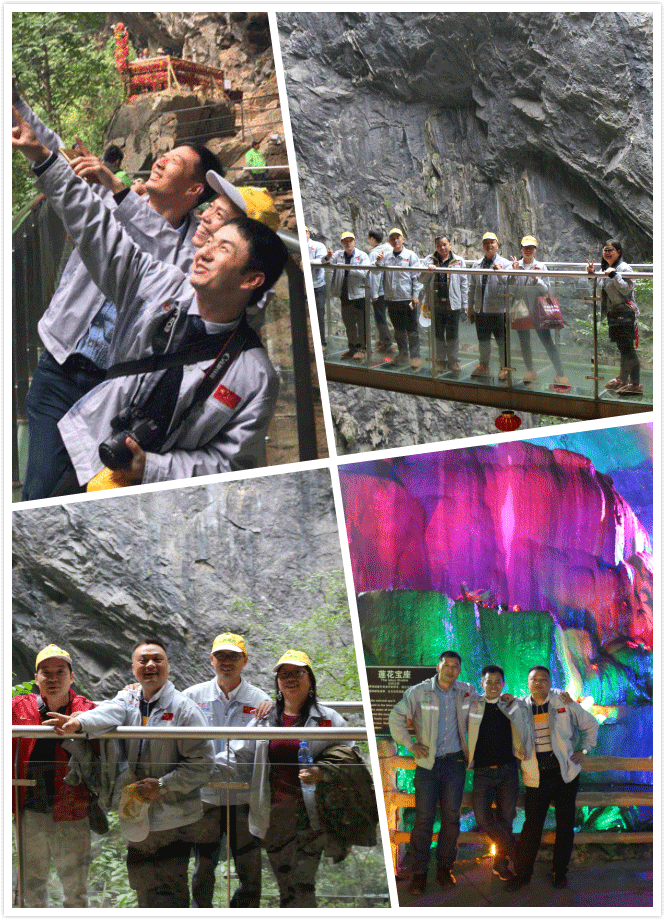洞天仙境內(nèi),還有一景——懸空玻璃棧道,懸空洞內(nèi)絕壁上高達(dá)百米。沿著石梯攀上棧道石臺(tái),更能360度欣賞洞內(nèi)千變?nèi)f化的奇石,“夢(mèng)想之旅”的團(tuán)隊(duì)成員們走在棧道上,沒有感到步步驚心,而是豪情萬丈,欲與天公試比高。