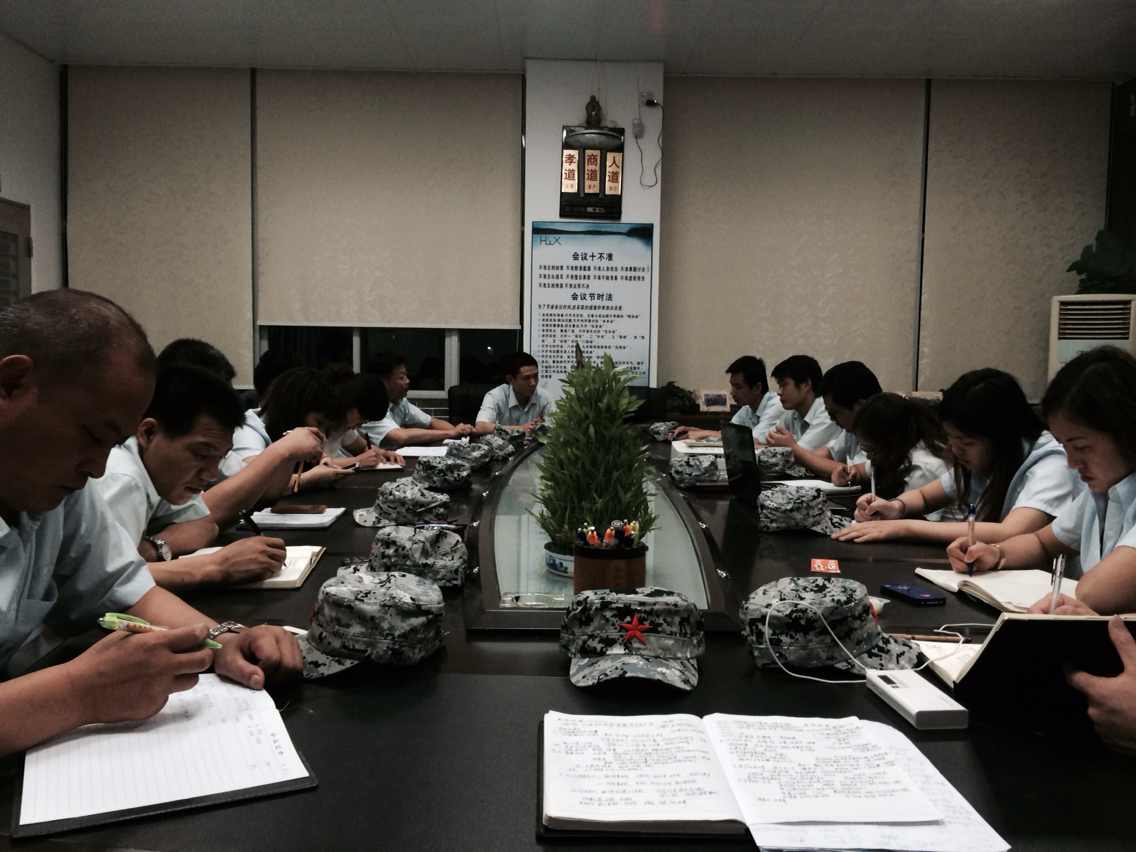 2014年6月14日下午,匯興智造董事長(zhǎng)鐘輝帶領(lǐng)公司核心高管干部走訪了三個(gè)企業(yè)參觀學(xué)習(xí),當(dāng)晚回來(lái)后,7點(diǎn)半會(huì)議室里召開第二季度總結(jié)大會(huì)。會(huì)議上,各位總結(jié)分享了下午時(shí)走訪企業(yè)時(shí)的所感所想,也總結(jié)了這一季度的好與壞。
