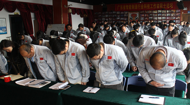 全體員工宣導(dǎo)企業(yè)理念,并向企業(yè)“商道、孝道、人道”行三鞠躬