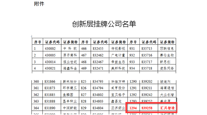 廣東匯興精工智造股份有限公司自2016年12月30日成功掛牌新三板后又傳來一大喜訊,5月30日,全國中小企業(yè)股份轉(zhuǎn)讓系統(tǒng)(以下簡稱“全國股轉(zhuǎn)系統(tǒng)”)公布了2017年創(chuàng)新層掛牌公司名單,廣東匯興精工智造股份有限公司(股票代碼:839258)成功從全國一萬余家新三板掛牌企業(yè)中脫穎而出,躋入新三板“優(yōu)等生”行列。