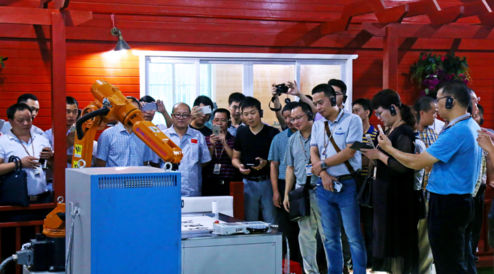 董事長鐘輝陪同五華縣科技骨干團一行參觀了匯興智造工業(yè)4.0體驗館。介紹了體驗館“順其‘智’然”、機‘智’未來”的設(shè)計理念,如何將物聯(lián)網(wǎng)、傳感技術(shù)、大數(shù)據(jù)、工業(yè)機器人等技術(shù)融入到傳統(tǒng)生產(chǎn)制造中,最終實現(xiàn)智慧車間數(shù)字化工廠的目標(biāo)。