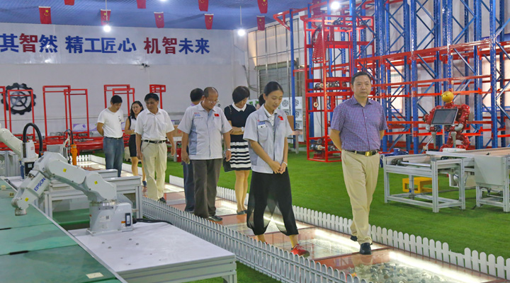 楊副院長一行在董事長鐘輝的陪同下參觀了企業(yè)的智能生產線演示、匯興精工智造工業(yè)4.0體驗館、工程研發(fā)部信息化組等部門,雙方表示今后要加強對接,細化合作內容,創(chuàng)造更多的社會價值。在參觀過程中,董事長鐘輝向一行成員介紹了公司的發(fā)展歷程、經營業(yè)務及取得成就,他表示作為掛牌上市公司,始終重視企業(yè)內部的人才培養(yǎng)和技術革新,需要校企之間密切合作,并在不同的專業(yè)和領域搭建多種平臺,促進校企間的優(yōu)勢互補和良性互動。