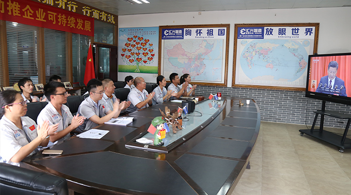 10月18日,中國(guó)共產(chǎn)黨第十九次全國(guó)代表大會(huì)在北京隆重開(kāi)幕,廣東匯興精工智造股份有限公司(股票代碼:839258)黨支部積極組織黨員收聽(tīng)收看大會(huì)開(kāi)幕盛況,匯興黨員同志們?yōu)槭糯蟠_定的奮斗目標(biāo)、描繪的宏偉藍(lán)圖歡欣鼓舞,紛紛表示要以十九大精神為指引,積極投身科學(xué)發(fā)展的偉大實(shí)踐,為建設(shè)現(xiàn)代工業(yè)4.0做出貢獻(xiàn)。