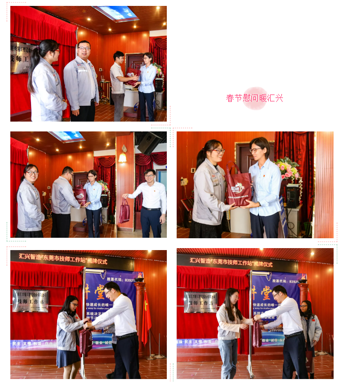 鐘輝董事長向蒞臨此次揭牌儀式的領(lǐng)導(dǎo)致以衷心的感謝。首先作了企業(yè)人才培養(yǎng)及規(guī)劃報(bào)告,表示公司一直秉承“創(chuàng)于手、精于工、智于器、匠于心”的工匠精神,任何事情都要精益求精、鍥而不舍,把手頭上的事情做到極致。接下來,將積極發(fā)揮技師工作站的指導(dǎo)作用,致力于發(fā)展高技能人才培養(yǎng)計(jì)劃。他強(qiáng)調(diào),感謝東莞這片沃土,讓我們努力在2019年實(shí)體經(jīng)濟(jì)發(fā)展面臨著國內(nèi)外復(fù)雜的嚴(yán)峻形勢下,公司仍能在逆境中實(shí)現(xiàn)增長。未來,匯興將更加重視技能人才的引進(jìn)和培養(yǎng)工作,充分發(fā)揮高技能人才引領(lǐng)帶動(dòng)作用,推動(dòng)高技能人才隊(duì)伍建設(shè),增強(qiáng)企業(yè)創(chuàng)新能力和核心競爭力,把工作站的實(shí)際工作轉(zhuǎn)化為技術(shù)改革和提升人才素質(zhì)的力量源泉,為公司的發(fā)展提供有效的技能人才支撐,為東莞市打造“技能人才之都”城市貢獻(xiàn)一份力量。會(huì)后,大嶺山人社分局春運(yùn)有序流動(dòng)領(lǐng)導(dǎo)小組與匯興員工面對面交流,并送上春節(jié)慰問品,政府“送政策”“送溫暖”暖企暖心活動(dòng)細(xì)節(jié),如同這寒冷的冬季中最溫暖人心的一抹陽光,讓與會(huì)員工代表非常感動(dòng)如沐春風(fēng)倍感溫暖。技師工作站是東莞市新型高技能人才培養(yǎng)模式載體,是指承擔(dān)制訂技師培養(yǎng)規(guī)劃,開展技術(shù)培訓(xùn),多渠道加快培養(yǎng)高技能人才,總結(jié)推廣技師培養(yǎng)經(jīng)驗(yàn),普及應(yīng)用生產(chǎn)技能等活動(dòng),并建立技能人才和技能開發(fā)成果信息庫,展示技能創(chuàng)新成果的工作室,進(jìn)而推動(dòng)行業(yè)、企業(yè)產(chǎn)業(yè)升級和技術(shù)進(jìn)步。匯興智造在智能制造領(lǐng)域擁有近20年的研發(fā)、設(shè)計(jì)、實(shí)施、應(yīng)用經(jīng)驗(yàn),通過打造智能裝備全產(chǎn)業(yè)鏈產(chǎn)品(智能裝備硬件+系統(tǒng)軟件+系統(tǒng)服務(wù)),賦予傳統(tǒng)生產(chǎn)制造業(yè)更智能的元素,并用具性價(jià)比的整廠自動(dòng)化系統(tǒng)解決方案幫助更多企業(yè)解決生產(chǎn)制造的痛點(diǎn)。此外,公司還獲批建立了“廣東省院士專家企業(yè)工作站”、“東莞市院士工作站”、“省級博士后創(chuàng)新實(shí)踐基地”、“廣東省智能制造系統(tǒng)工程技術(shù)研究中心”、“東莞市研究生培養(yǎng)工作站”、“東莞市技師工作站”、“江西理工大學(xué)先進(jìn)制造技術(shù)研發(fā)中心”、“南昌大學(xué)機(jī)電工程學(xué)院研究生聯(lián)合培養(yǎng)基地”、“南昌大學(xué)機(jī)電工程學(xué)院研究生實(shí)踐基地”、“東莞理工學(xué)院教學(xué)實(shí)習(xí)基地”、“東莞理工學(xué)院城市學(xué)院就業(yè)實(shí)習(xí)基地”、“東莞職業(yè)技術(shù)學(xué)院校企合作伙伴單位”等多個(gè)科研平臺(tái),這些科研平臺(tái)的引進(jìn)為技師工作站建設(shè)賦能。