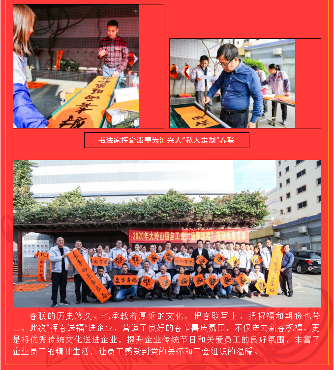 翰墨飄香送春聯(lián),文化進企暖人心——鎮(zhèn)總工會來匯興開展“迎春送?!爆F(xiàn)場揮春活動