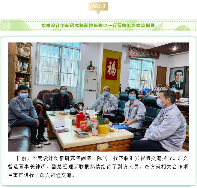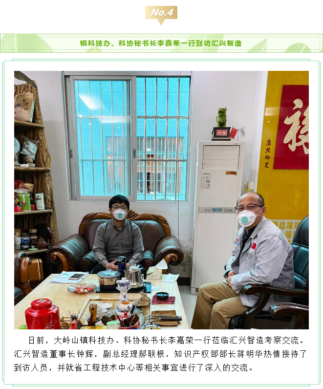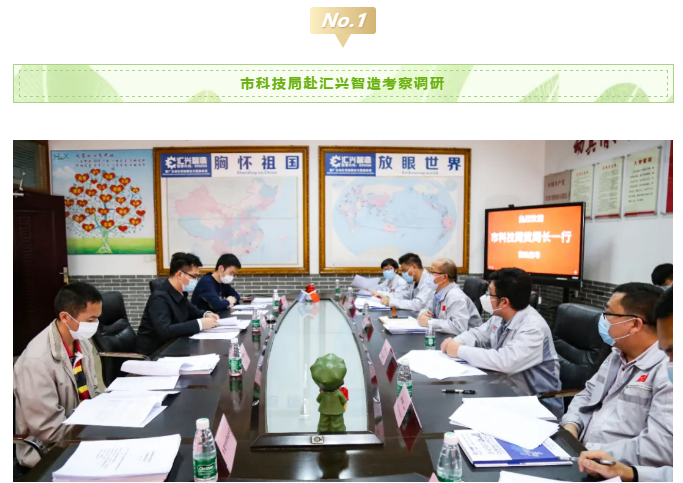 2020年3月11日,市科技局副局長黃天梁、科長李耀球、主任科員劉宇豪蒞臨匯興智造考察市重大科技項(xiàng)目攻關(guān)情況。匯興智造董事長鐘輝、技術(shù)總監(jiān)丁度坤博士、財務(wù)總監(jiān)彭理仕,副總經(jīng)理彭大海及知識產(chǎn)權(quán)部部長蔣明華等項(xiàng)目相關(guān)人員列席了會議。